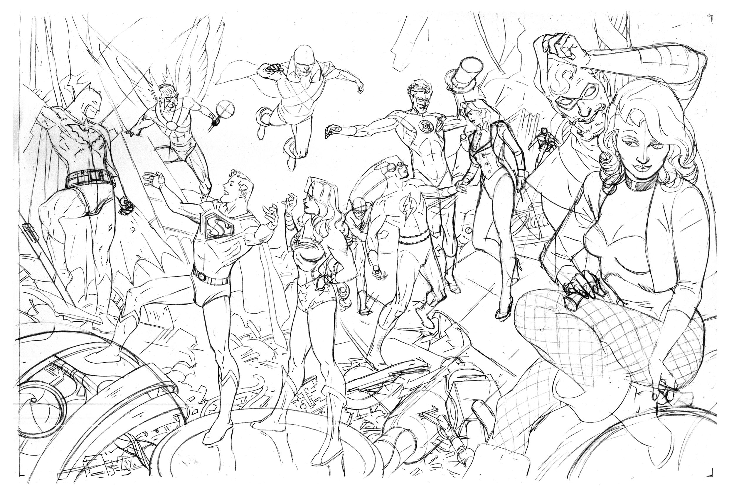 I like the "bits" where Barry and Hal vie for the attention of Zatanna, Ollie offers his services as a cobbler to Dinah and especially where the Bruce smiles at Kal's story of just how big his monster was while Dianna is less than impressed.