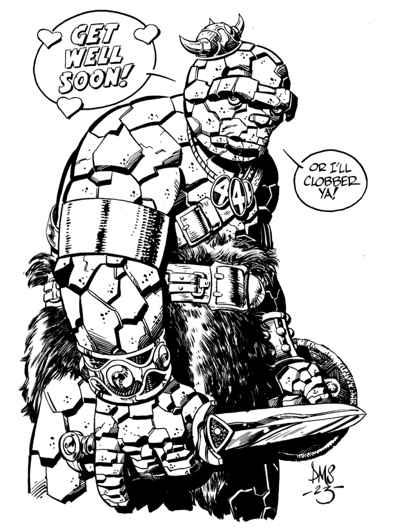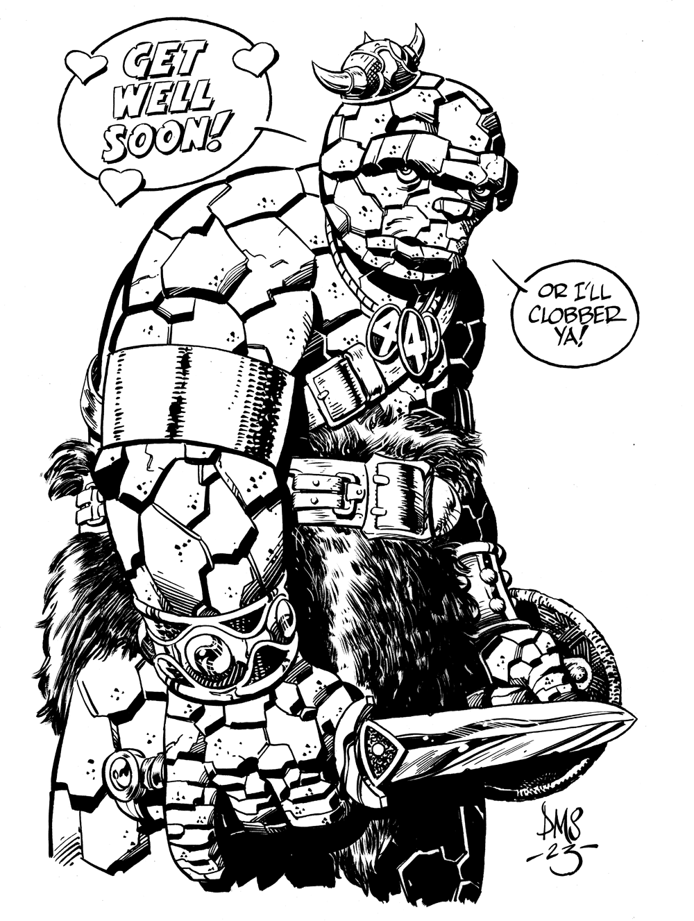 Bad news and good news. Seems our old buddy Barry Windsor-Smith (silly Brit that he is) went and had himself a stroke. Latest word is he's out of the hospital and doing much better. YEA! So, let's all wish Barry a big, GET WELL SOON!