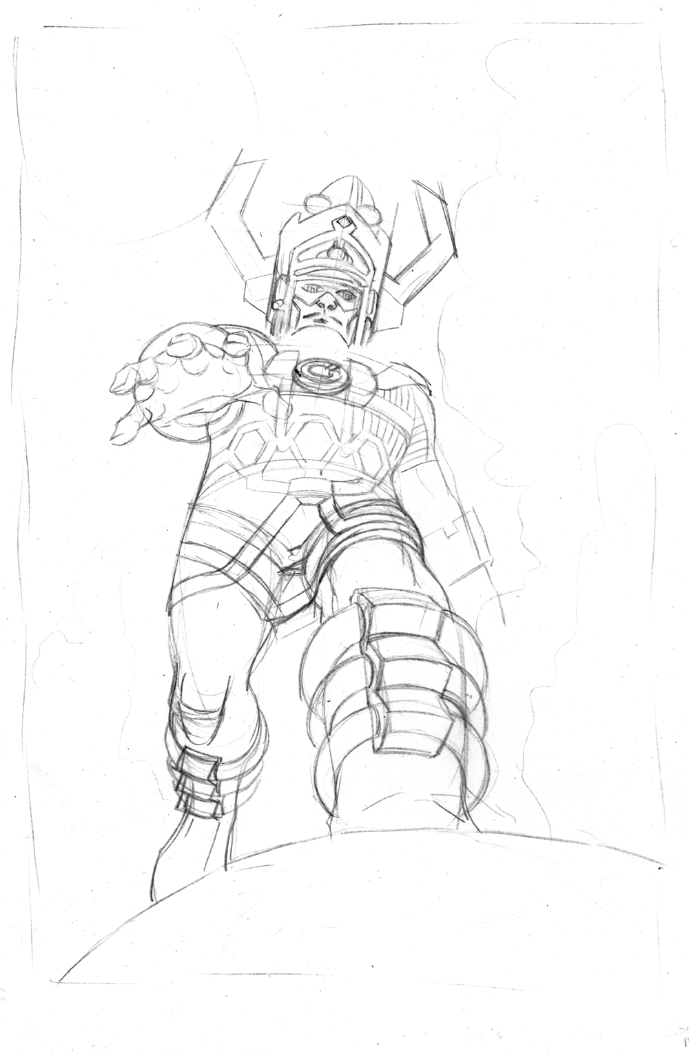 While hardly the Jack of Hearts, Galactus has one of the "busier" costume designs out there. Especially the headgear. Much study, sketching, re-drawing to get it just right and, where do they stick the logo...? Right over the helmet. Ain't life grand?