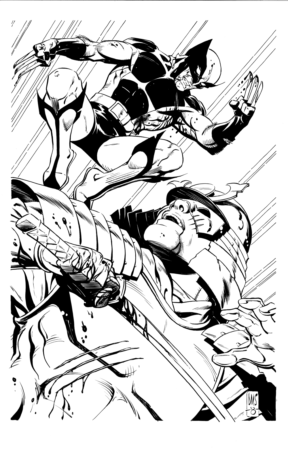 I briefly pondered a Gil Kane like opera of violence. An explosion here, an explosion there in the hopes it might made the scene bigger, longer, epic-er. Ultimately I stayed with the original idea of simply trading shots. Each shot leads directly to the next, and the next, and the next. While this reduces the fights duration to 3-4 seconds, somehow that seemed appropriate given Logan's state of mind.