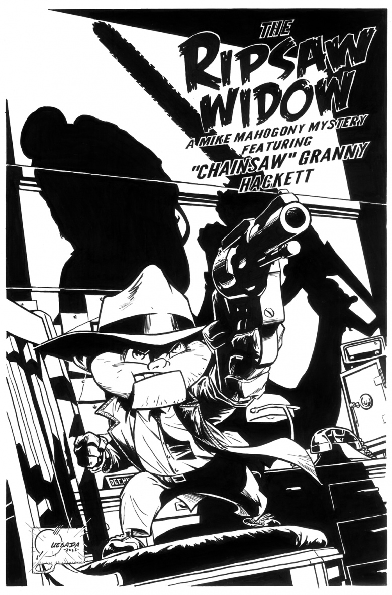 Long time followers will remember a post some months ago featuring an illustration of Chance fencing with Cap’n Hitch. What I didn’t mention at the time was that it was done as part of a swap with your buddy and mine, Joe Quesada. One for him, one for me. Well lookie what showed up on my doorstep just the other day… Joe’s take on everyone’s favorite dummy detective, Mike Mahogany! Wowser!