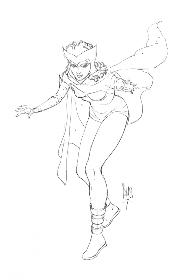 For no other reason than drawing Pietro last week, let's go with his twin sister Wanda.