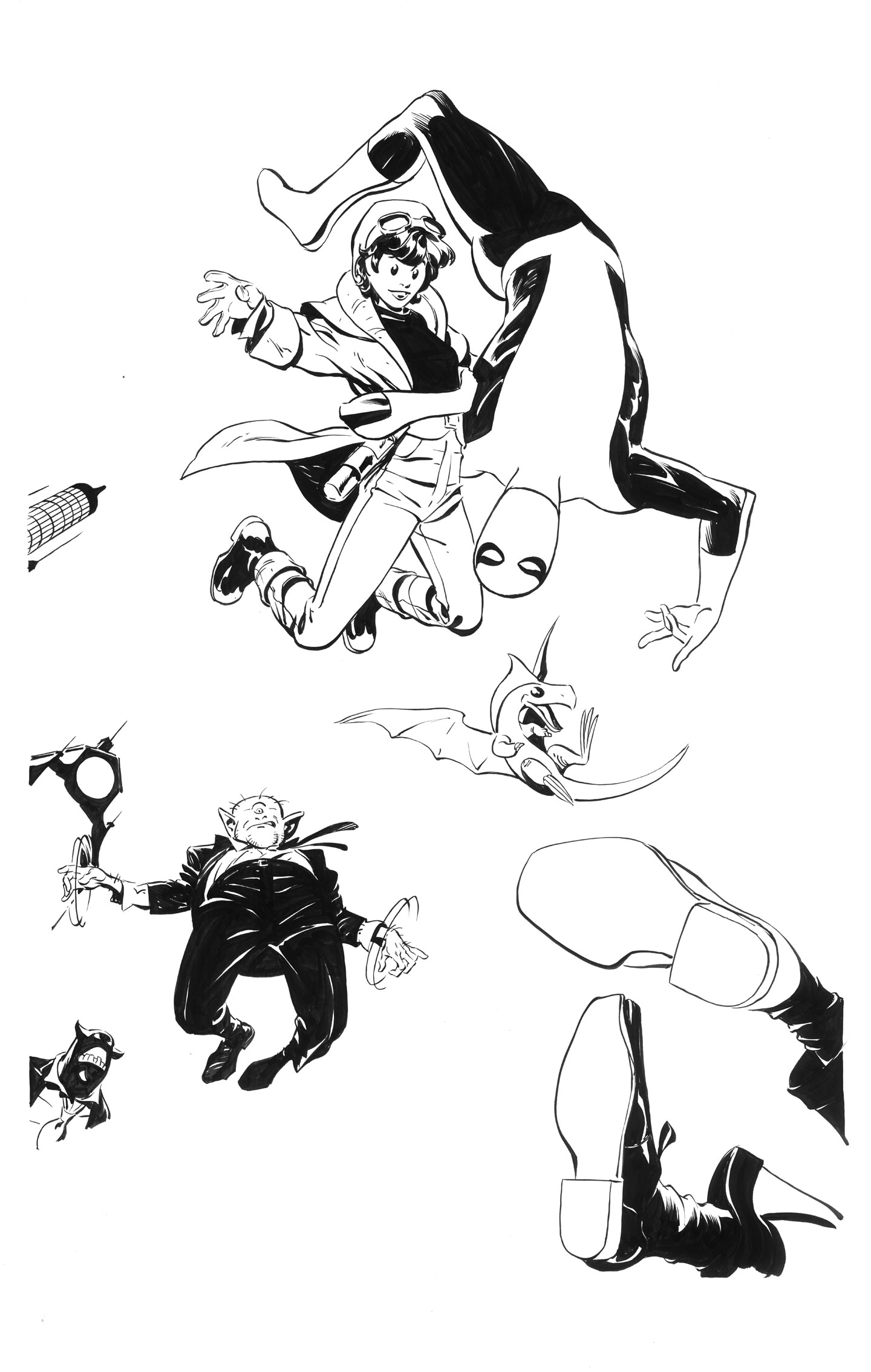 The request was for Chance and St George on the case of the mysterious Spider-Man. Lots of shadows, flashlights, that sort of thing. At no point was a request for "interiors" made but, that's what I saw as I read the e-Mail and that's what the client received in the first Batch-O-Thumbs™.