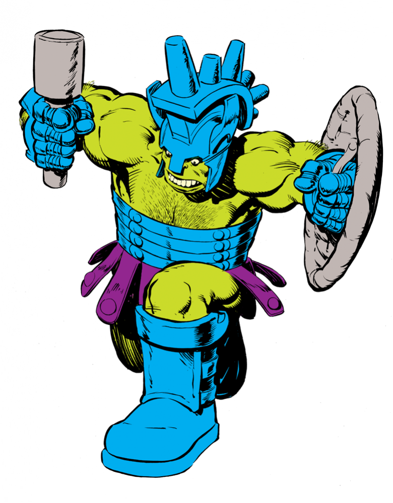 Returning to the pick-a-comic-any-comic trick for inspiration reveals a book from Marvel’s infancy, The Incredible Hulk #5. I know what this is as soon as I see the cover. This is the one with Hulk as a gladiator!!! Imagine my surprise when the armor only shows for a few panels on a couple of pages... And yet, those few shots affected generations of cartoonists as we see variations show up decades later in: Thor Ragnarok; Planet Hulk; World War Hulk...