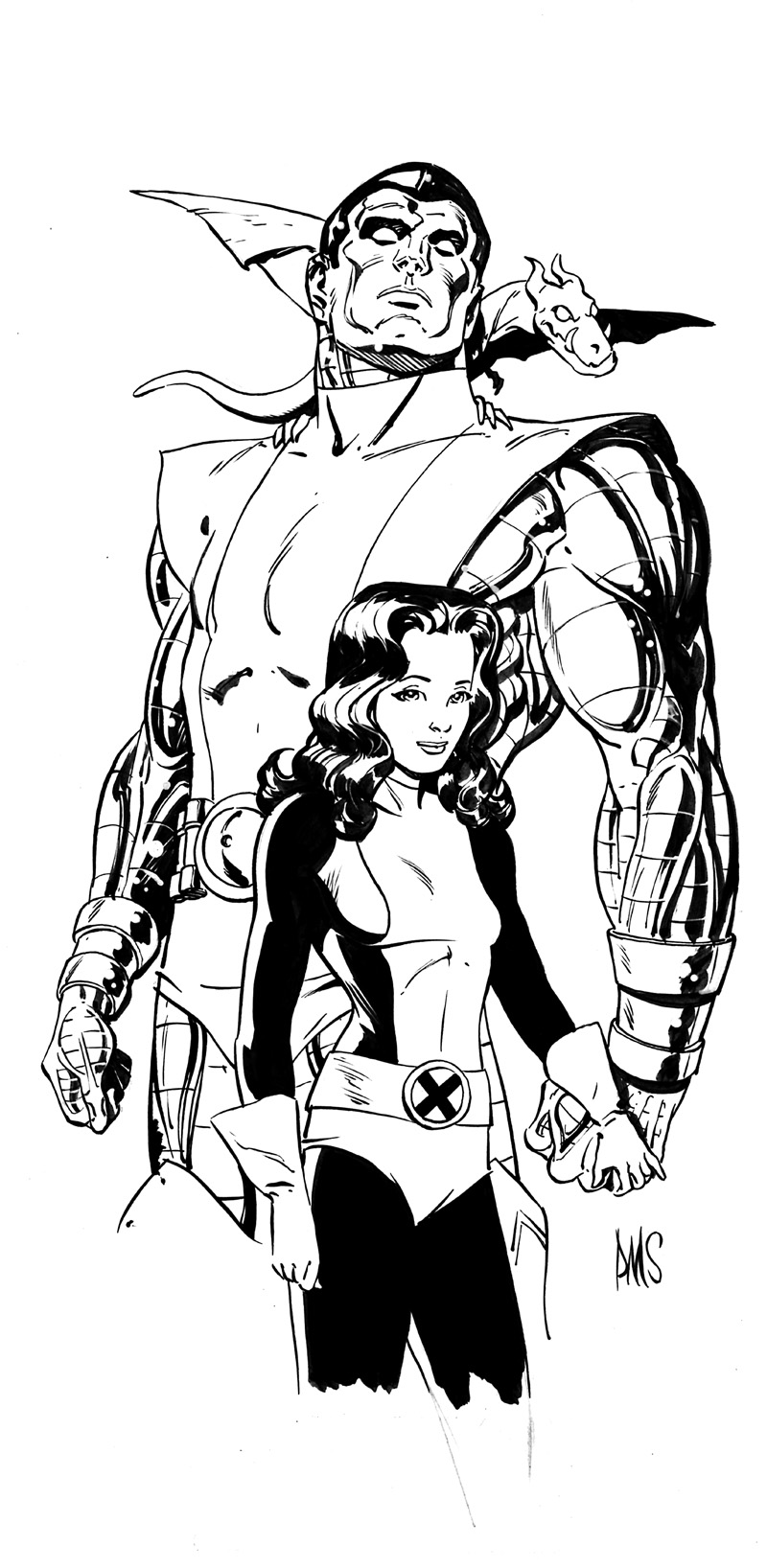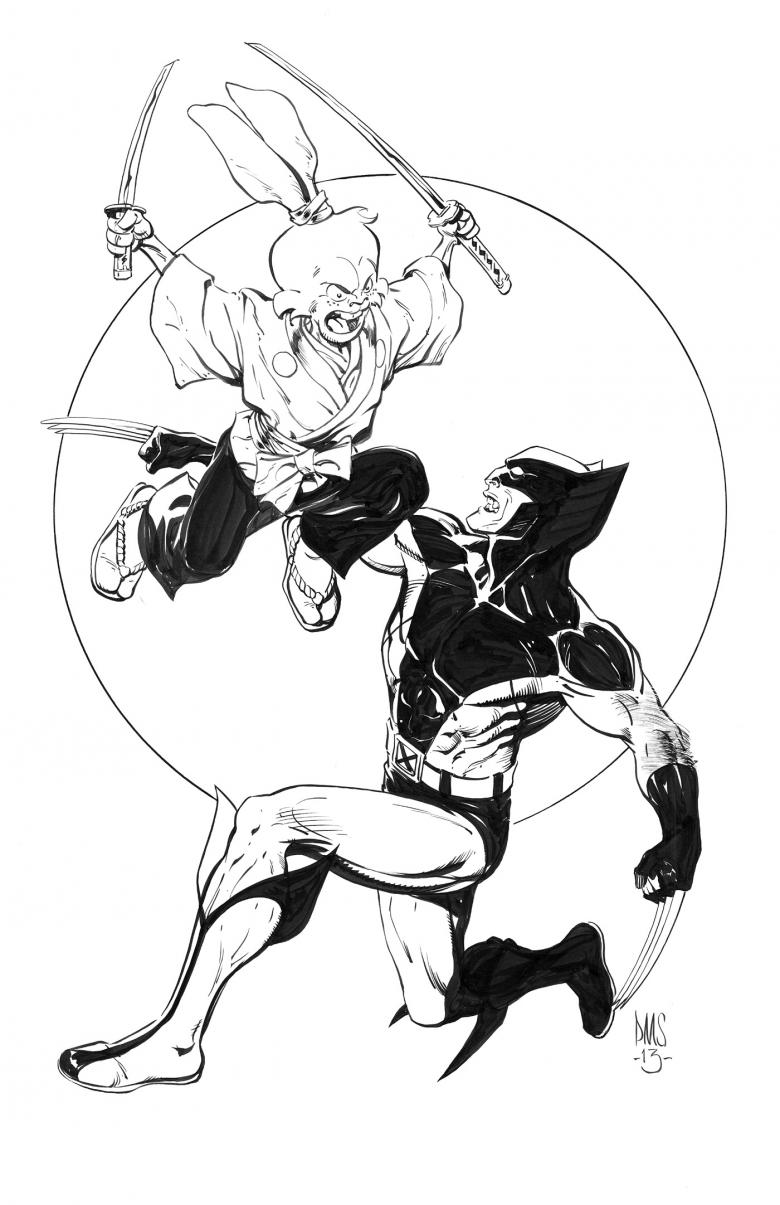 Usagi vs Wolverine is 11x17 brush and ink on Strathmore 500