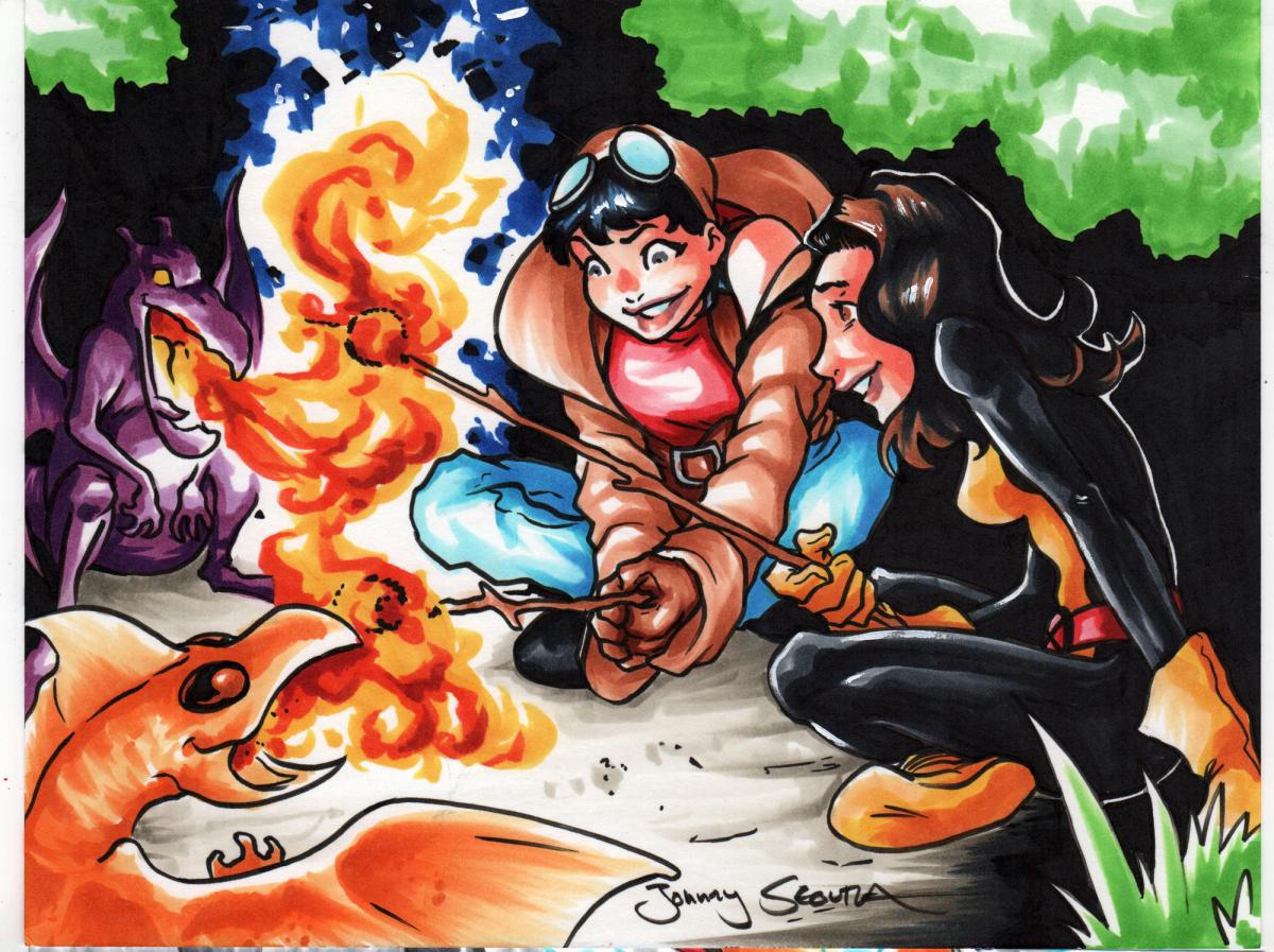 Kitty Pryde and Chance Falconer camp fire. Art by Johnny J Segura 3rd