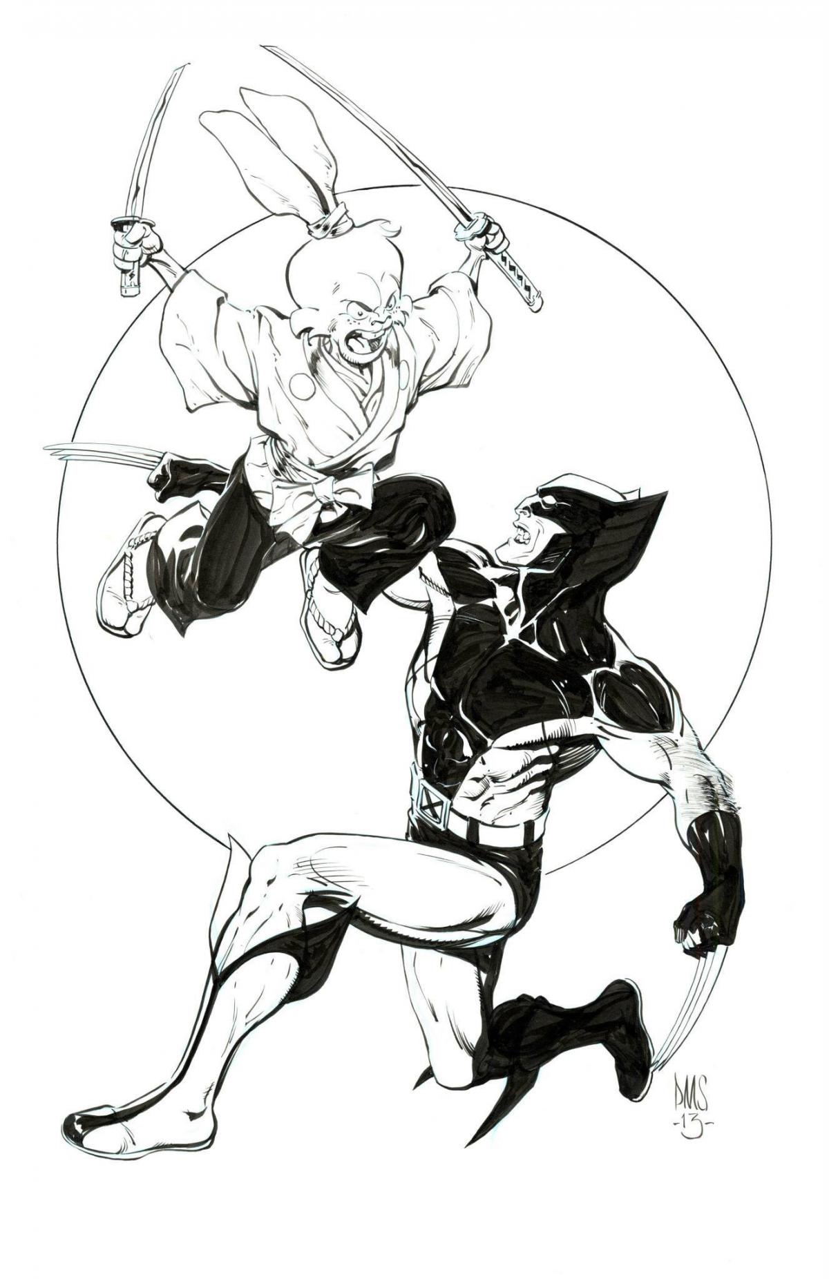 Smitty donated this exciting battle between Usagi Yojimbo and Wolverine to help Sharon & Stan Sakai.